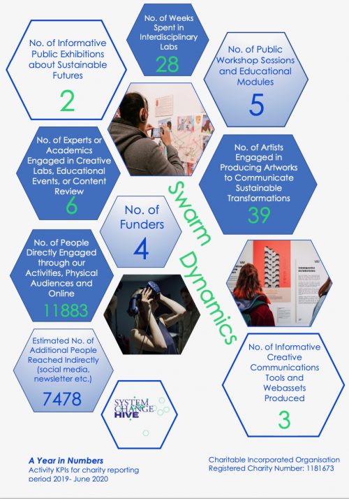 Our flagship project for 2019, the HIVE is an innovative collaboration between Swarm Dynamics, experts in sustainable development and systems change at STEPS Centre, and Brighton University School of Media. 14 emerging artists and communicators will work with experts to explore and translate complex issues and information about solutions into art driven communications to inspire mainstream audiences. A resulting informative exhibition, including Virtual Reality simulation, soundart and visual art will be brought on tour across the UK from late 2019 till end of 2020 in a rich public engagement programme of festivals and venues, including NESTA’s Future Fest, Brighton Digital Fest, Birmingham Open Media and Eden Centre. Read the press release here or visit the website systemchangehive.org